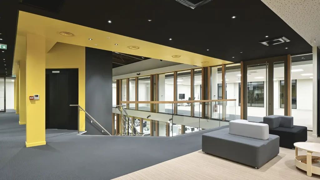Ainsi, le projet s’inscrit dans une démarche qui relève d’un équilibre entre valorisation du paysage naturel existant, et création d’une activité opérationnelle dans un écrin qui révèle la marque. Par un traitement respectueux axé sur la qualité des espaces et de la synergie entre l’intérieur et l’extérieur, l’objectif était d’offrir des espaces de travail qualitatifs et adaptables aux besoins.